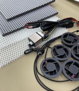 Ціна включає в себе сам комплект вентиляції ( від 4 до 6 вент, прокладки, проводка, кнопка «вкл-викл»), монтаж в сидінні і підключення до бортової мережі.